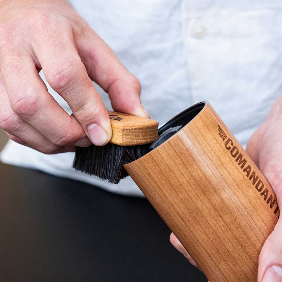 Das Bürstle #4, produziert im deutschen Schwarzwald, wurde eigens für die Reinigung des Mahlwerks der Comandante-Mühle entworfen. Ideal in Kombination mit der Long Neck Brush!